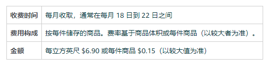 長期月度倉儲費:0.06*6.9=0.41美元/月